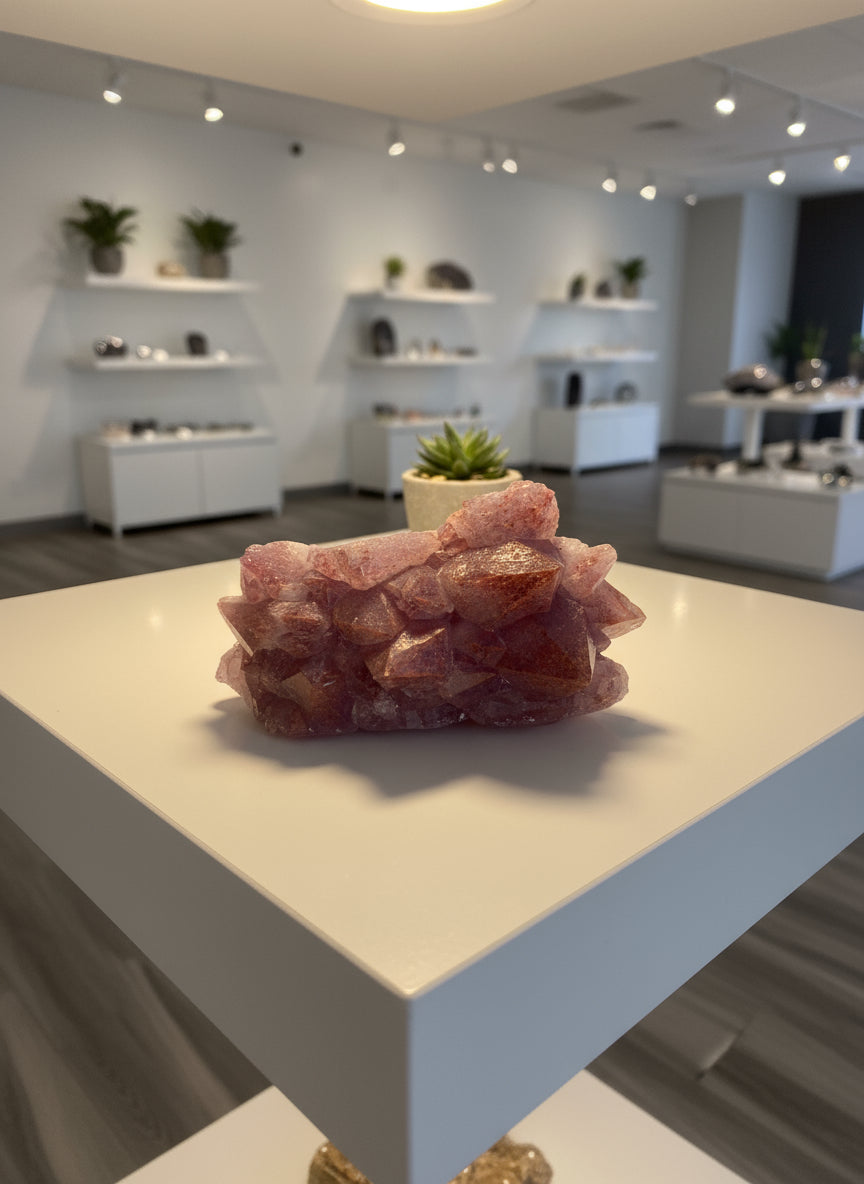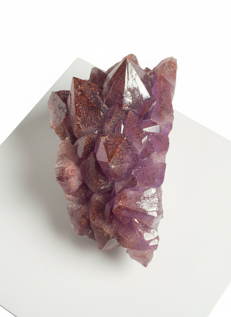 Discover the stunning beauty of this natural Canadian crystal specimen featuring Hemetite inclusion and vibrant purple hues. Measuring 11cmx3.5cmx7cm, this amethyst cluster can be displayed on edge or flat, making it versatile for any setting. Sourced from our family-owned mine, this rare find is a must-have for any gemstone collection.