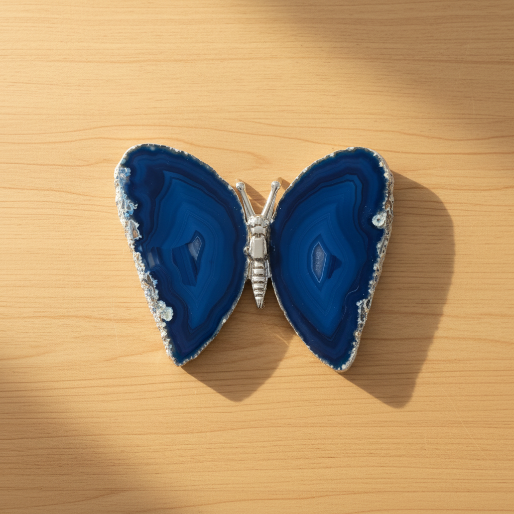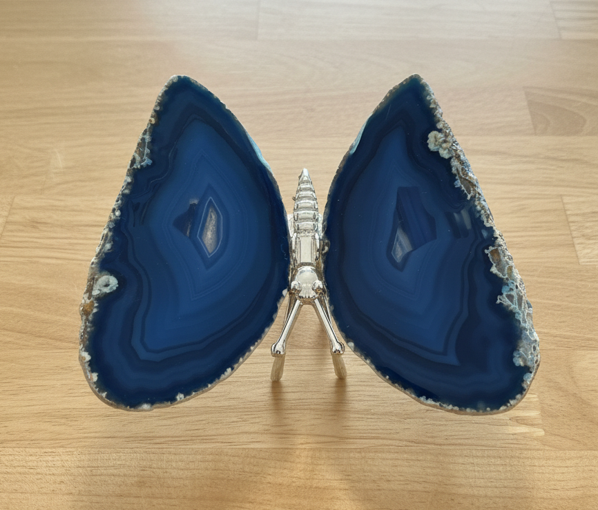 Brazilian Agate Butterfly Specimen – Deep Cobalt Blue with Natural Banding
