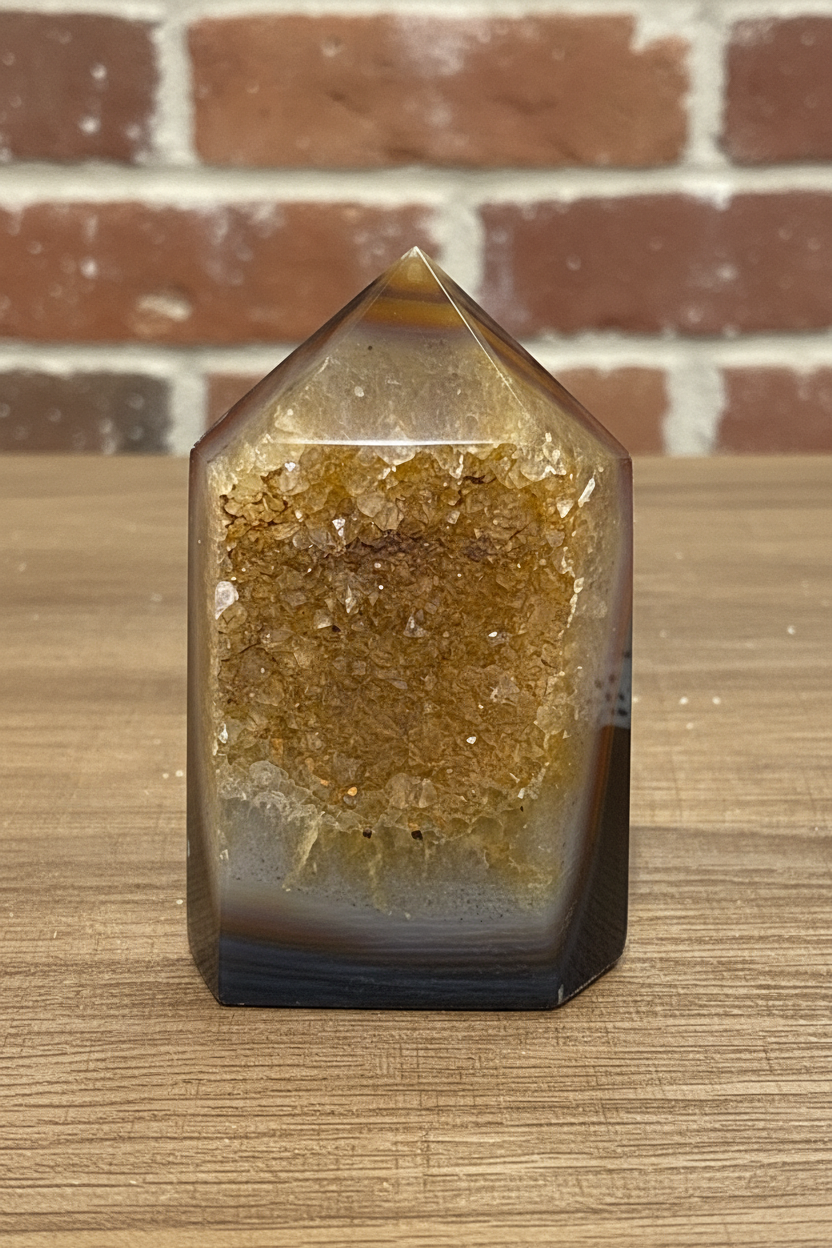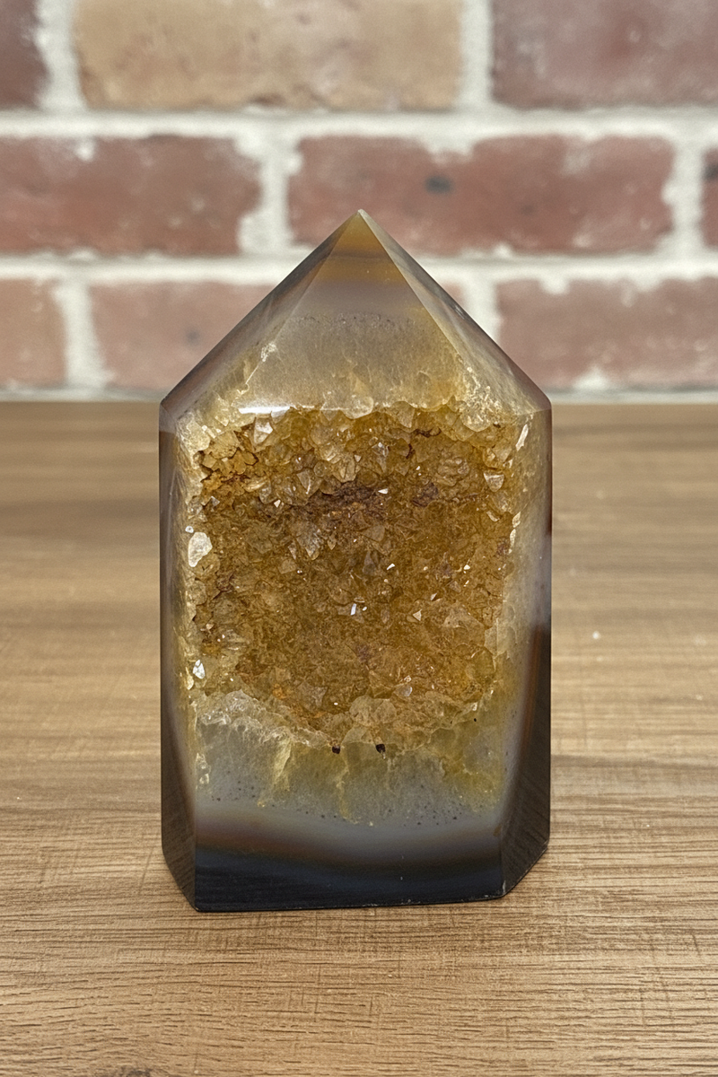 Citrine Agate Geode Tower – Golden Brown with Druzy Cavity