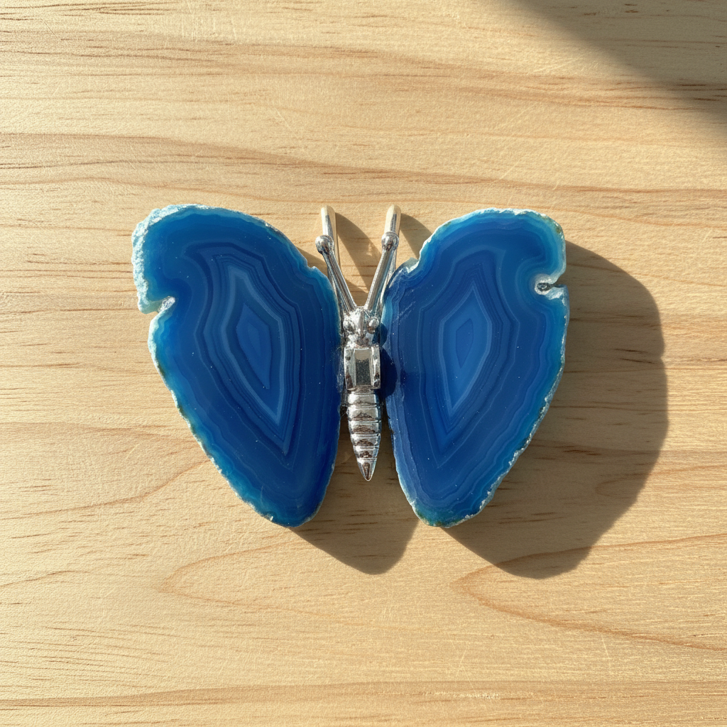 Brazilian Agate Butterfly Specimen – Vibrant Blue Banded Wings