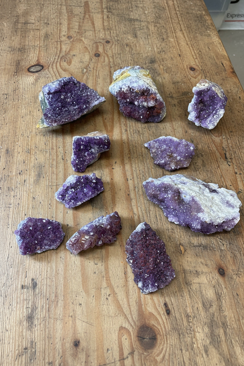 • Features: Varied purple color tones, hematite inclusions throughout collection, authentic Canadian amethyst, natural crystal formations