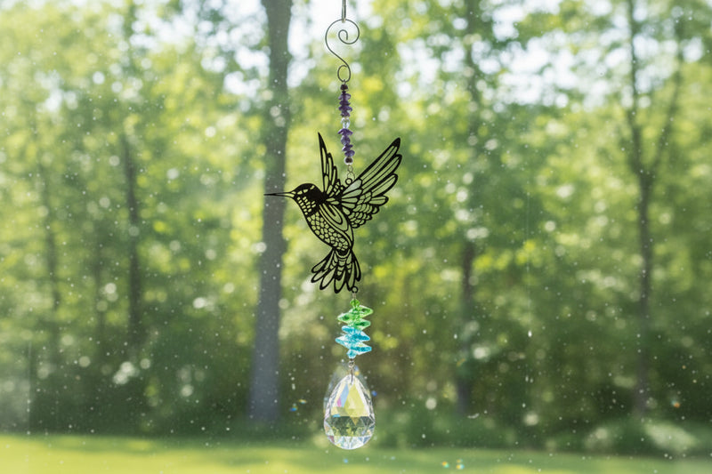 Amethyst Hummingbird Ornament - Handcrafted Crystal Suncatcher