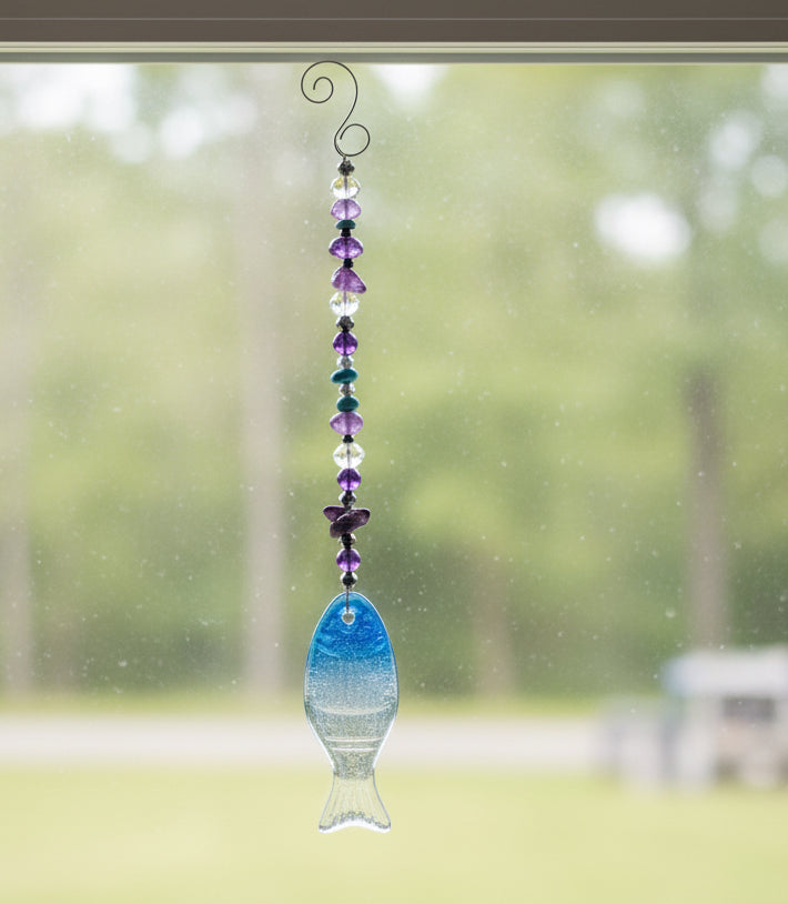 Amethyst Fish Suncatcher | Handcrafted Crystal Window Ornament