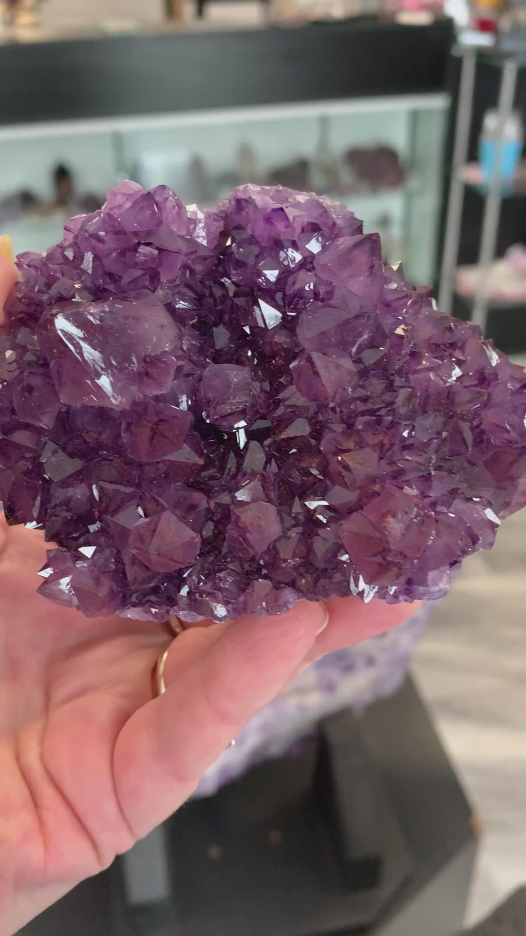 This radiant deep purple amethyst cluster is a natural masterpiece, mined directly from Diamond Willow Amethyst Mine in Thunder Bay, Ontario. With sharply defined crystal points and rich saturation, each piece showcases the raw beauty and energy of Canadian amethyst. Perfect for collectors, crystal healers, or anyone seeking a meaningful February birthstone gift, this locally sourced gem adds elegance and intention to any space.