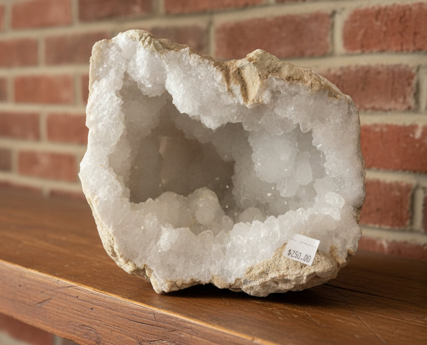 Discover the mesmerizing beauty of this authentic Moroccan geode, a stunning natural crystal specimen that showcases millions of years of geological artistry. This premium piece features sparkling crystal-lined cavities with unique mineral formations that captivate collectors and enthusiasts alike.