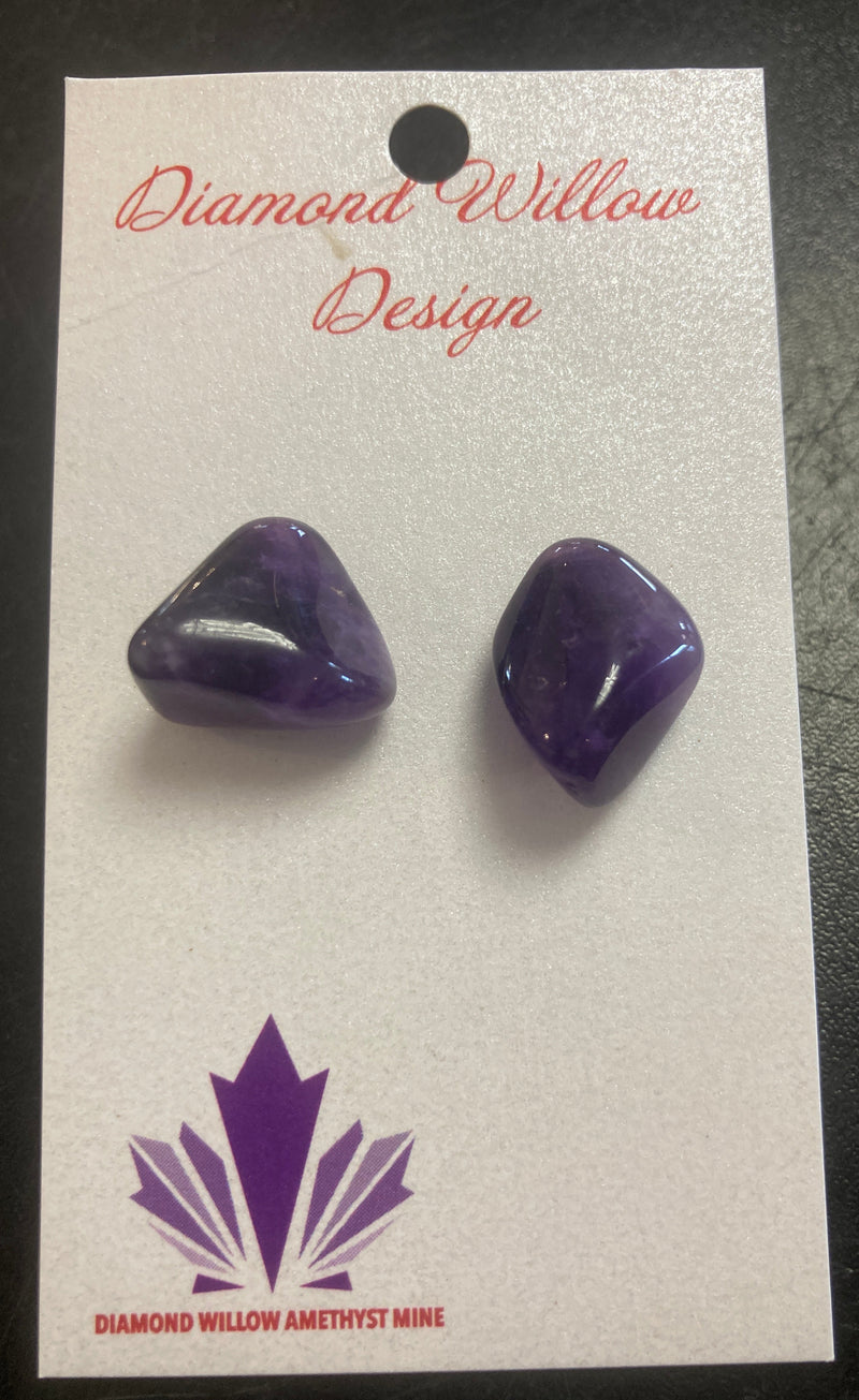 Expertly crafted with Diamond willow amethyst, these stunning Amethyst stud earrings offer a unique and elegant addition to any jewelry collection. The natural beauty and durability of this gemstone make it a perfect choice for daily wear, while its mesmerizing deep purple hue adds a touch of sophistication to any outfit. Enhance your style with these timeless earrings.