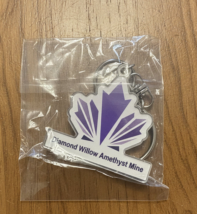 Introducing the Diamond Willow Amethyst Mine keychain, featuring our unique logo. Each keychain is individually wrapped, making it a perfect addition to your collection or a thoughtful gift for a loved one. Add a touch of nature and beauty to your daily routine with this one-of-a-kind keychain.