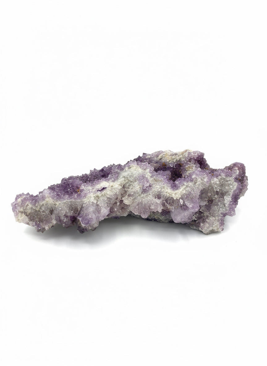 This natural Canadian crystal display specimen features beautiful purple banding and crystal arrangements, showcasing its unique form. Measuring 22cm x 10cm x 4cm, this family-owned product is 100% Canadian. Expertly crafted, it offers a stunning addition to any collection.
